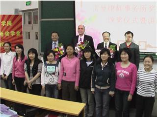 Edward E. Lehman首先用英文作了简短的介绍,向同学们表达了自己的问候。然后进行雷曼奖学金的颁奖仪式,据悉,雷曼奖学金是雷曼律师事务所和我院合作的一个项目,主要面对我院大三学生,每年提供十个名额,通过自我推荐、班级推荐,并由学校评审工作小组进行评审,最后和雷曼律师事务所共同商议定下名额。获奖者均有机会到雷曼律师事务所进行为期3个月的实习,前三名还将获得三千元人民币的奖学金。我院分党委副书记兼副院长王洪松和雷曼律师事务所的李建刚律师为其中的七名同学颁发了荣誉证书,王卫国院长和Edward E. Lehman先生则为获得前三名的同学亲自颁奖,随后,获奖同学代表发言。她表示,获得奖学金既是对以往成绩的肯定,更是对今后学习、工作的激励和鞭策,她会把这种荣誉转化为动力,不断克服困难,取得更大的成绩,不辜负祖国、学校和社会的培养与殷切希望。